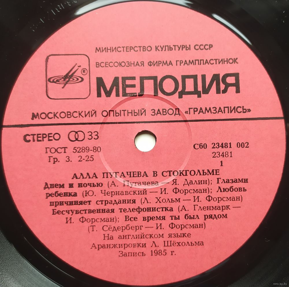 Запись фирмы World Record Music, 1985 г.