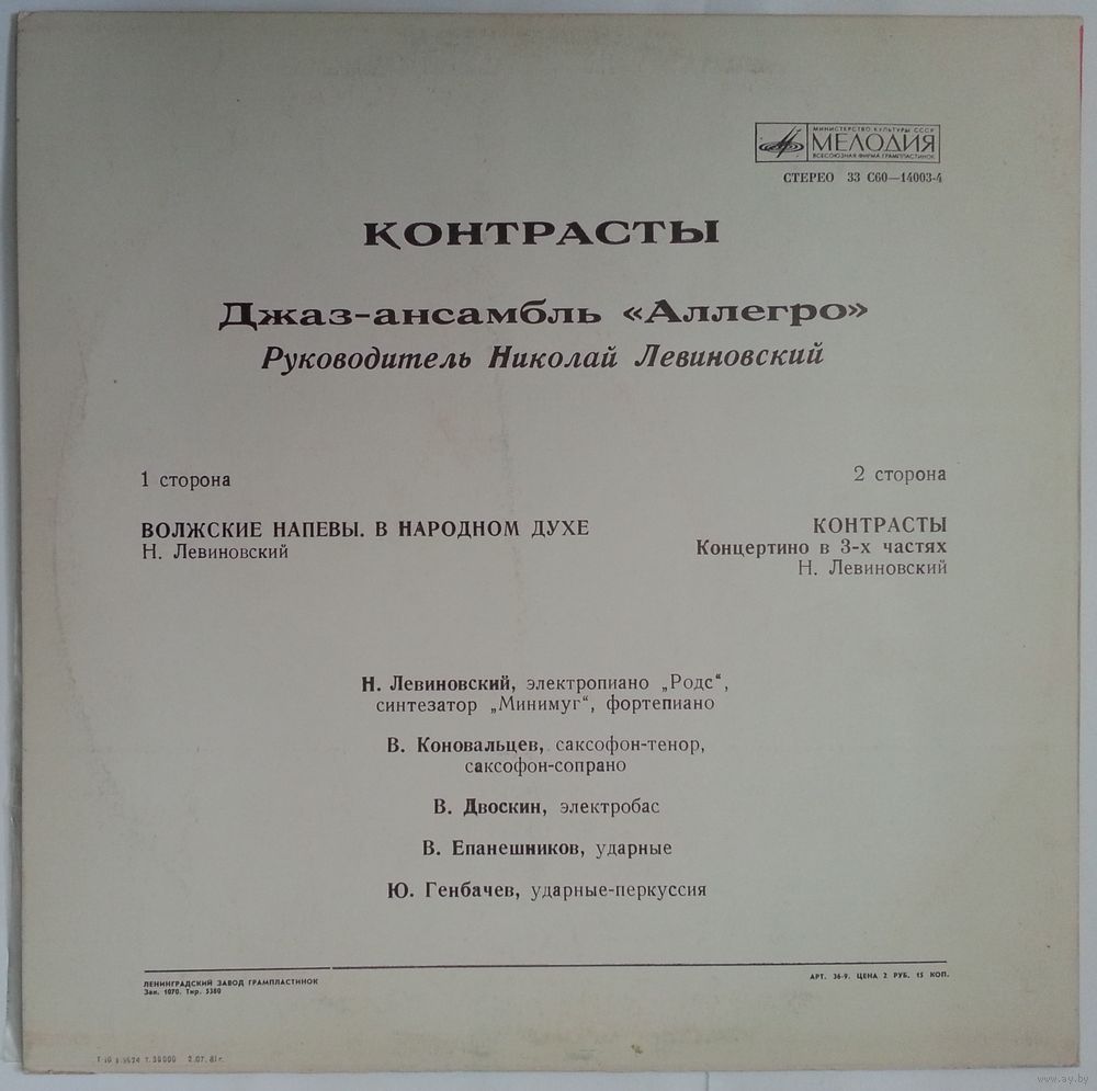 Итак, вы держите в руках первую пластинку ансамбля «Аллегро». В добрый путь!