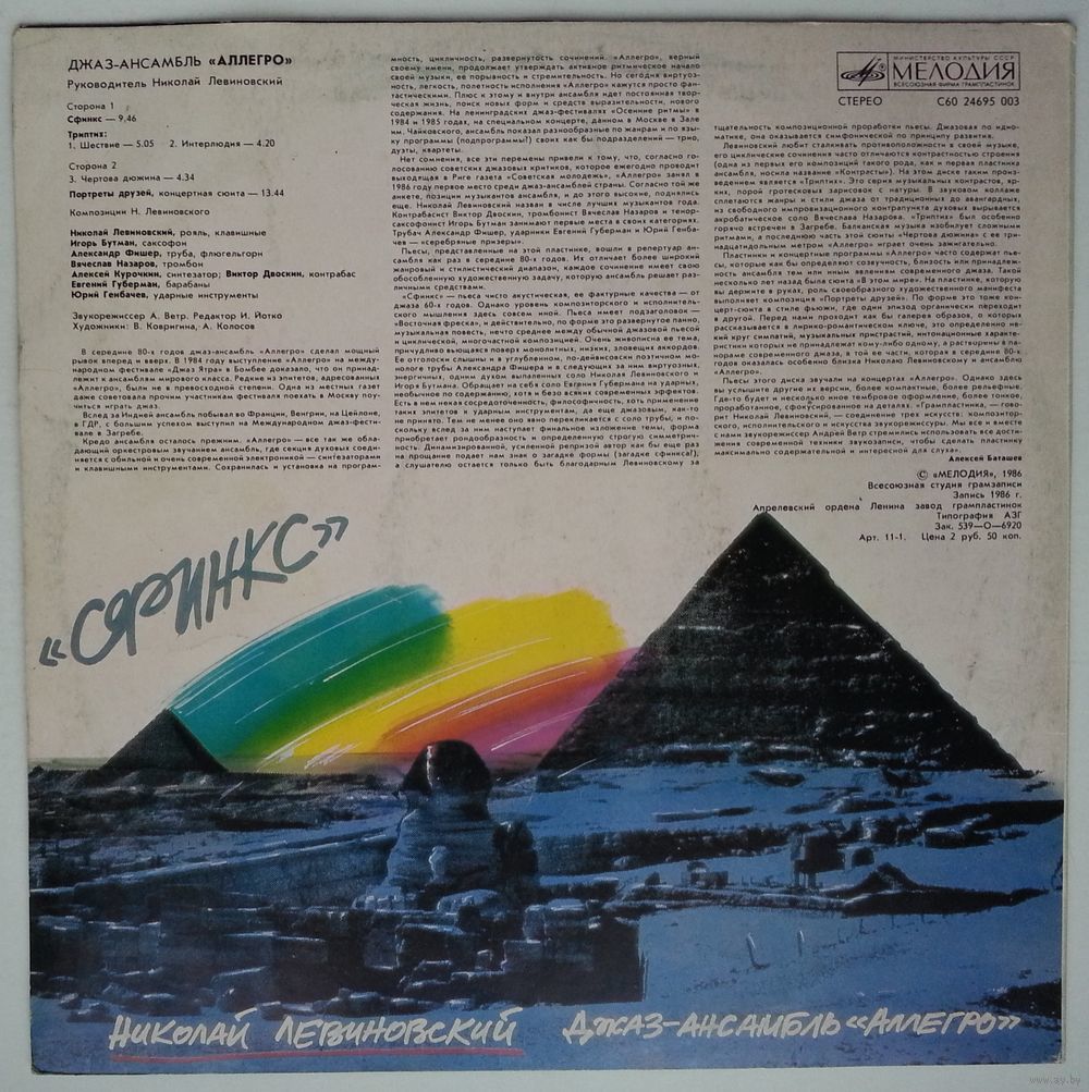 Звукорежиссер – Всесоюзная Студия Грамзаписи