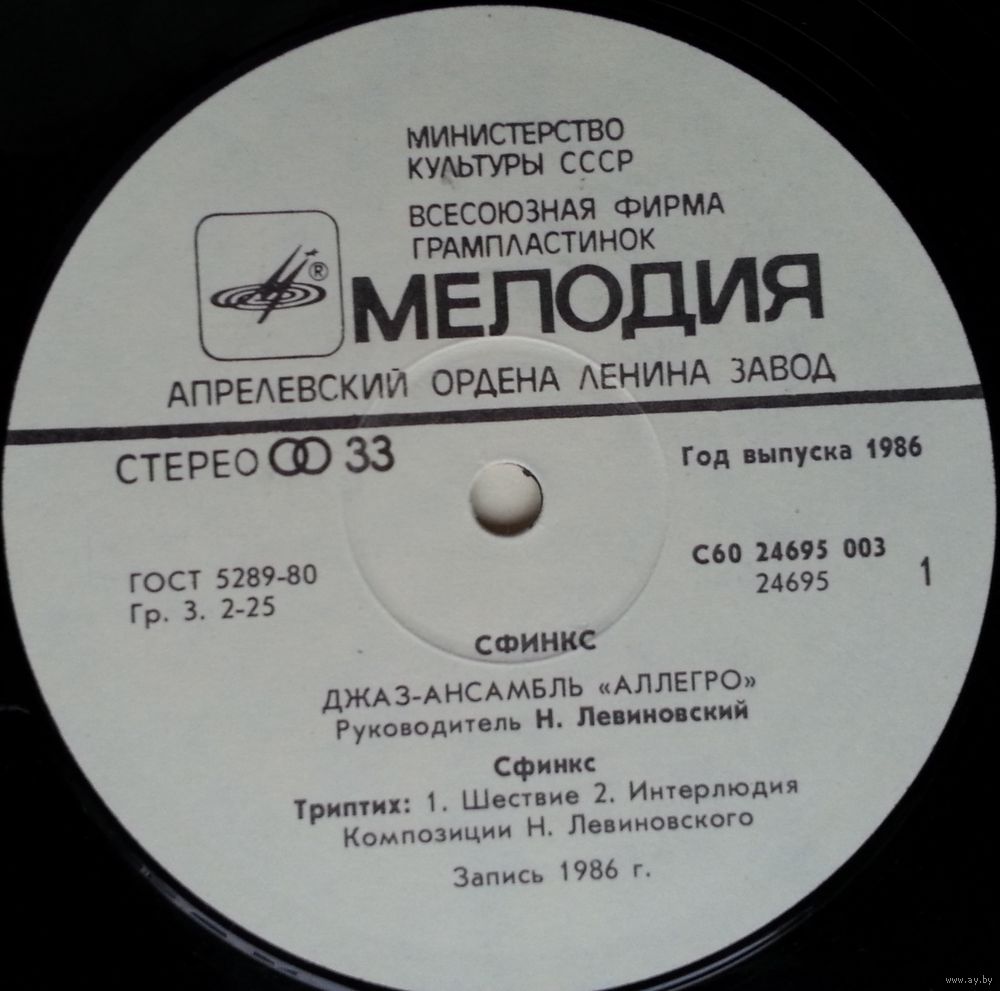 Производитель грампластинки – Апрелевский Завод Грампластинок