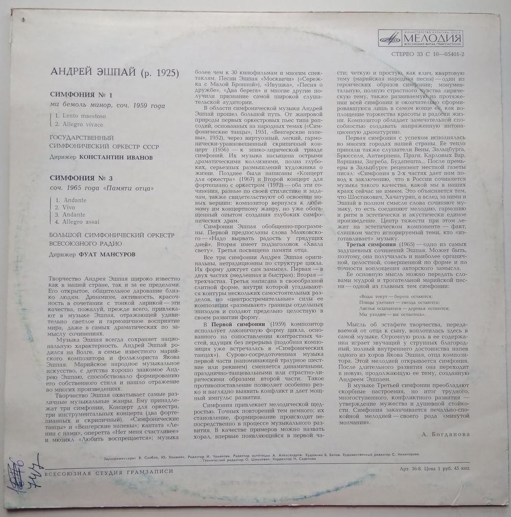 Симфония # 1 ми бемоль минор.
