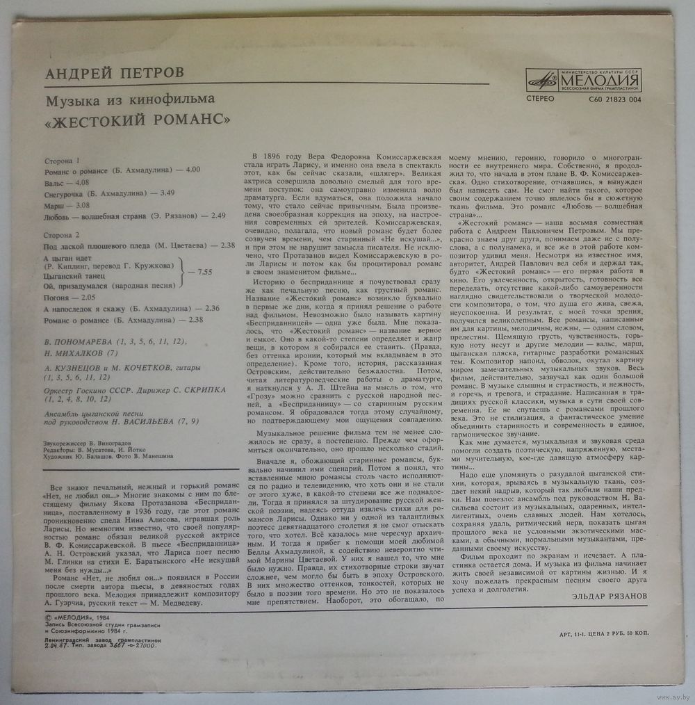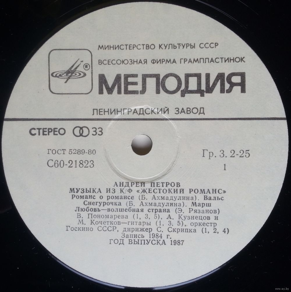 Запись Всесоюзной студии грамзаписи и Союзинформкино, 1984 г.