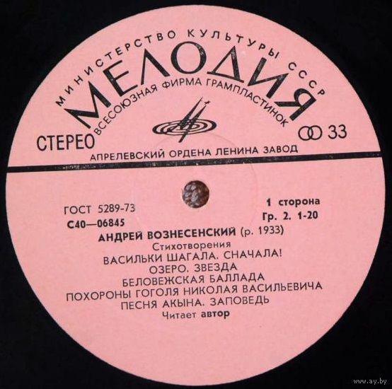 Стихотворения: Васильки; Шагала; Сначала!; Озеро; Звезда; Беловежская баллада; Похороны Гоголя Николая Васильевича; Песня акына; Заповедь; Исповедь; Правила поведения за столом; Скрымтымным; Не пишется; Диалог обывателя и поэта о НТР; Порнография духа; Муравей; Мужиковская весна; Свеча; Роща; Обман