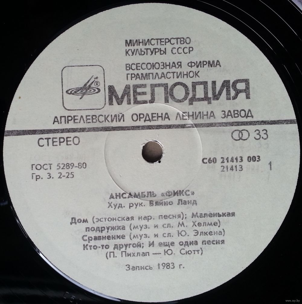 Таллинская студия грамзаписи. Запись 1983 г.