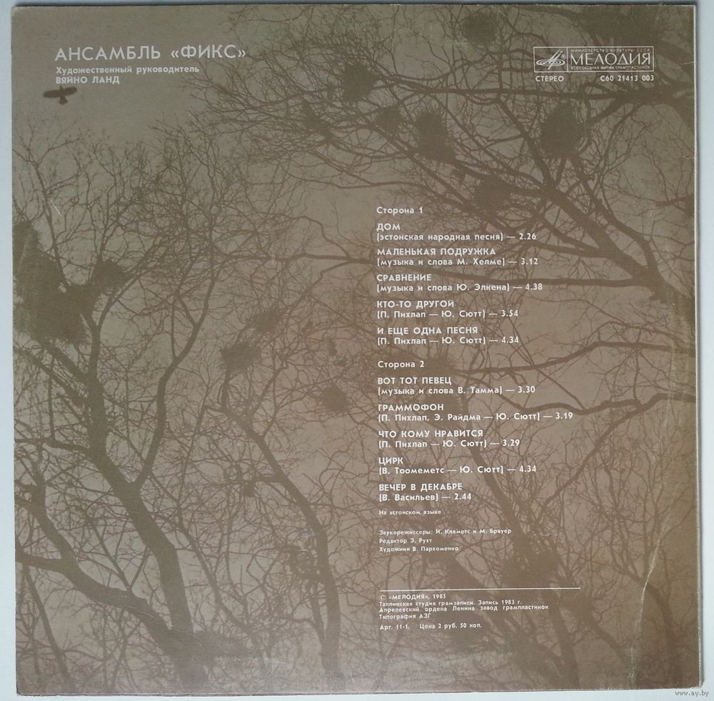 Таллинская студия грамзаписи. Запись 1983 г.