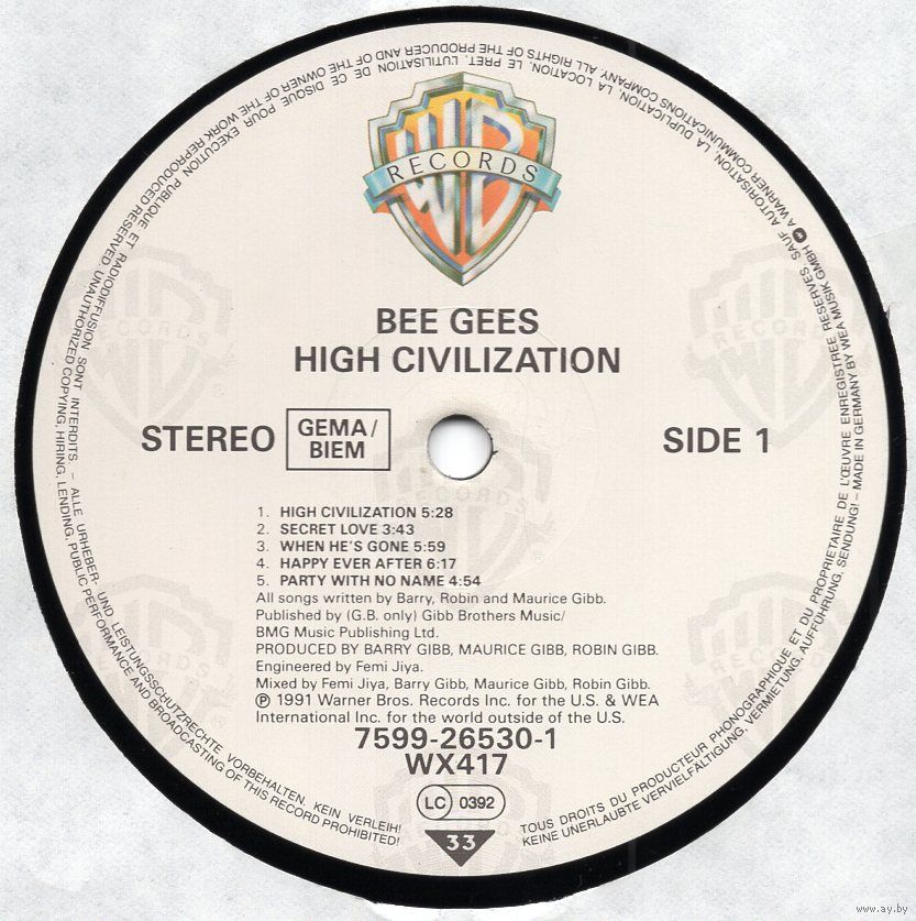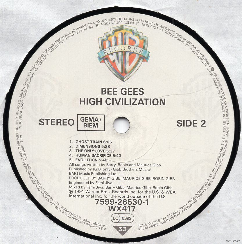 Старонка на discogs: https://www.discogs.com/release/30290990-Bee-Gees-High-Civilization?redirected=true