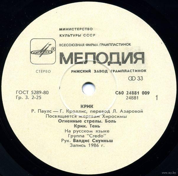 Запись 1986 года