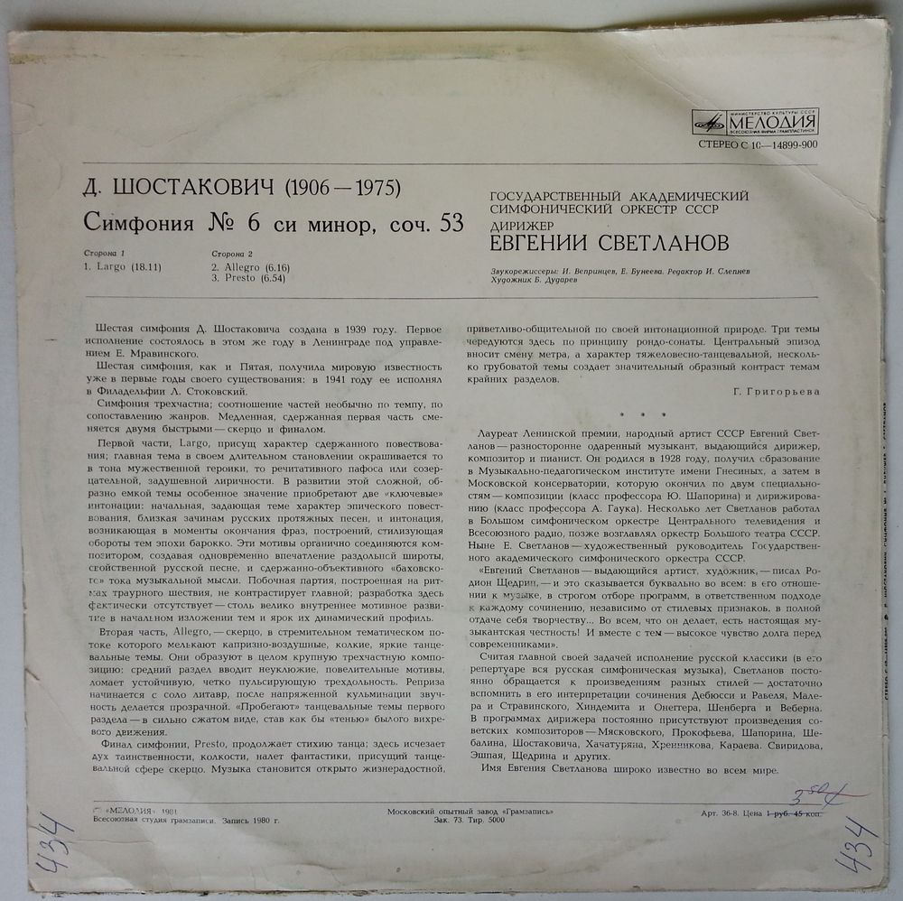 Академический симфонический оркестр СССР, дирижер Евгений Светланов