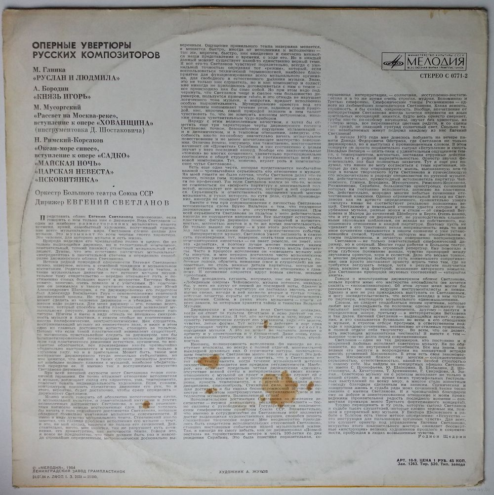 Оркестр Большого театра СССР. Дирижер Евгений Светланов.