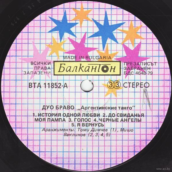 Arranged By – Misho Vaklinov* (tracks: A2 – A5, B1, B3, B4), Tomi Dimchev* (tracks: A1, B2, B5)
