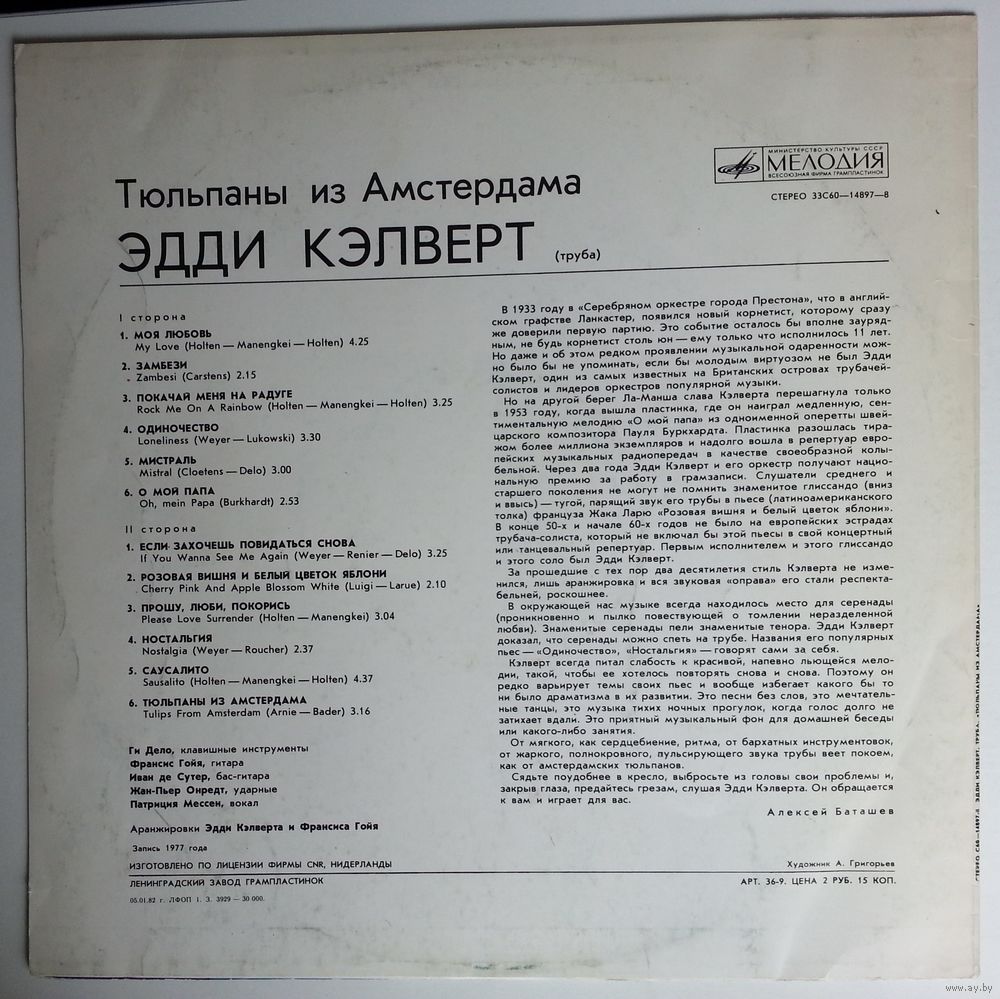 Eddie Calvert tp, Francis Goya g, Yvan De Souter bg, Guy Delo keyb, Jean-Pierre Onredt dr, Patricia Mersen - voc