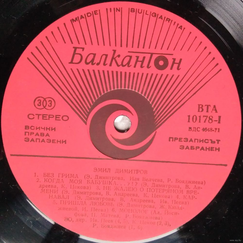 Conductor [ЭО] – А. Бахаров* (треков: B3), Ив. Пеев* (треков: A4, A5, B1, B2), К. Драгнев* (треков: B4, B5), К. Цеков* (треков: A2, A3), Р. Бояджиев* (треков: A1, A6)