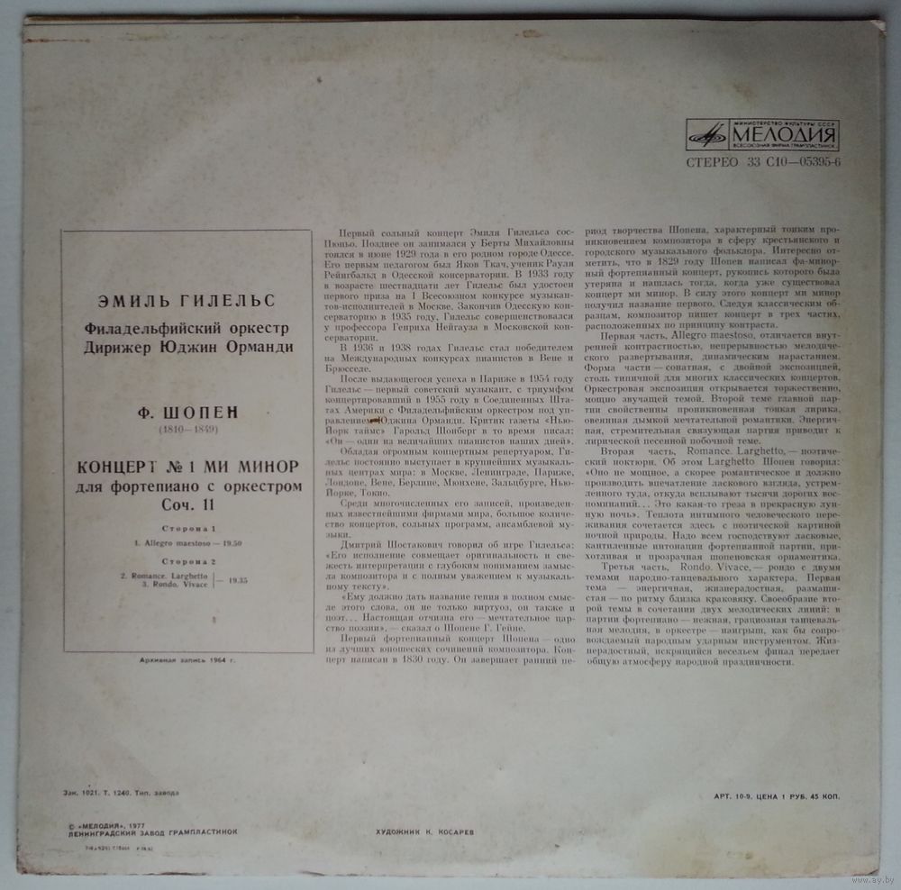 Производитель грампластинки – Ленинградский Завод Грампластинок