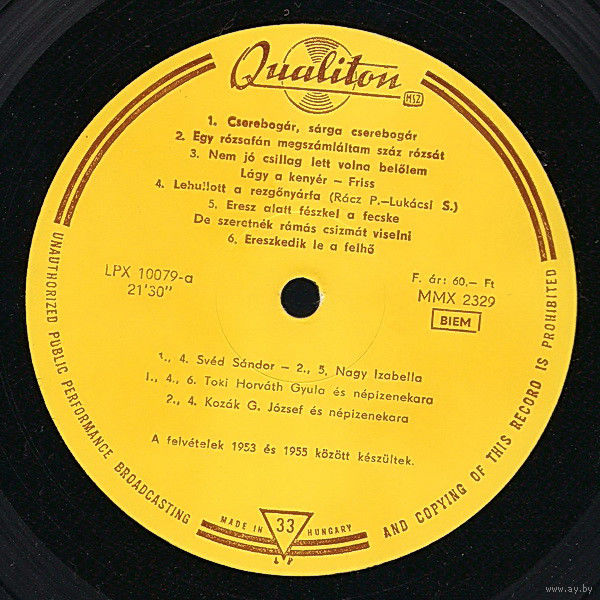 Toki Horváth Gyula És Népizenekara (tracks: A1, A4, A6),