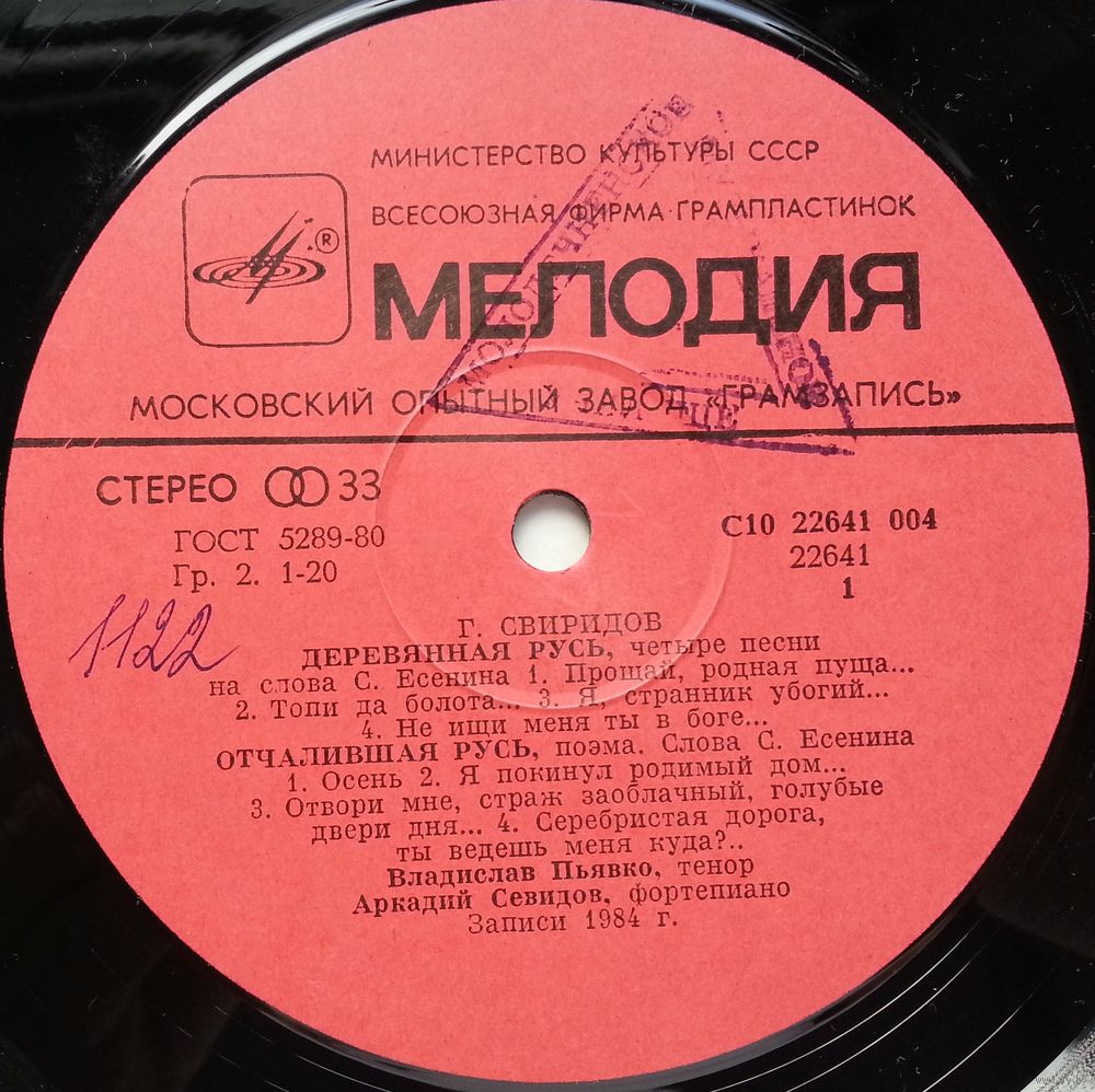 Данная пластинка представляет слушателям одно из самых интересных достижений певца в области камерного исполнительства— вокальную музыку выдающегося советского композитора Георгия Свиридова на стихи Сергея Есенина.