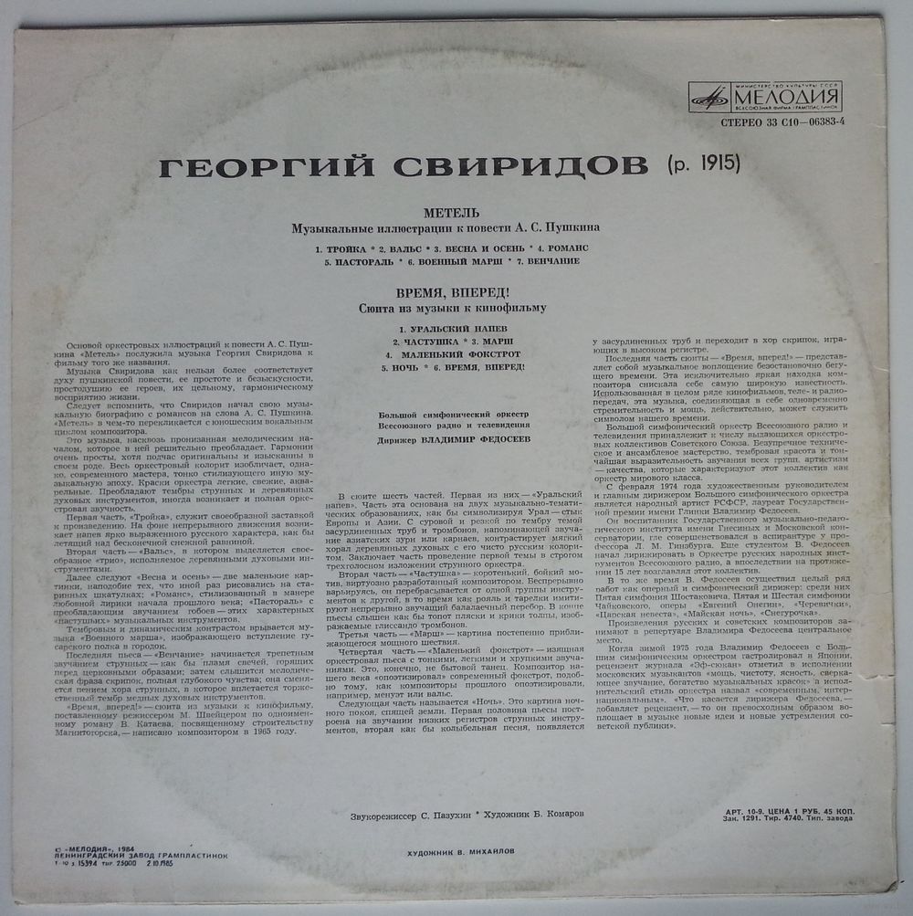 Основой оркестровых иллюстраций к повести А. С. Пушкина "Метель" послужила музыка Георгия Свиридова к фильму того же названия.
