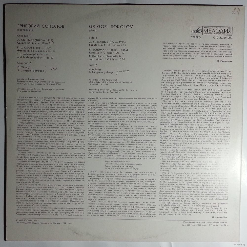 Recorded at the Grand Hall of Shostakovich Philharmonia of Leningrad on March 15, 1984