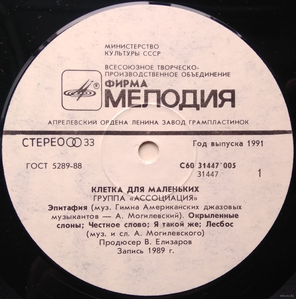 Всесоюзная студия грамзаписи. Запись 1989 года.