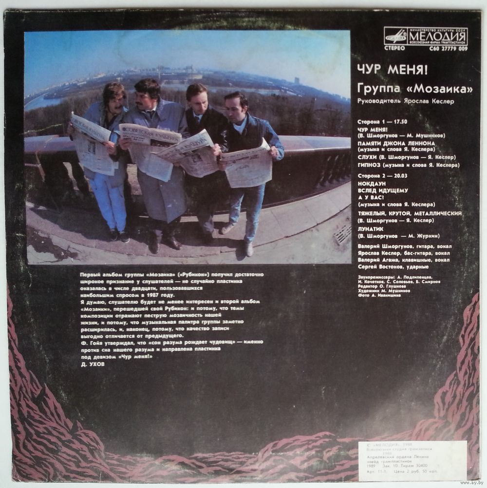 Первый альбом группы "Мозаика" ("Рубикон") получил достаточно широкое признание у слушателей — не случайно пластинка оказалась в числе двадцати, пользовавшихся наибольшим спросом в 1987 году. Я думаю, слушателю будет не менее интересен и второй альбом "Мозаики", перешедшей свой Рубикон: и потому, что темы композиций отражают пеструю мозаичность нашей жизни, и потому, что музыкальная палитра группы заметно расширилась, и, наконец, потому, что качество записи выгодно отличается от предыдущего. Ф. Гойя утверждал, что "сон разума рождает чудовищ" — именно против сна нашего разума и направлена пластинка под девизом "Чур меня!"
