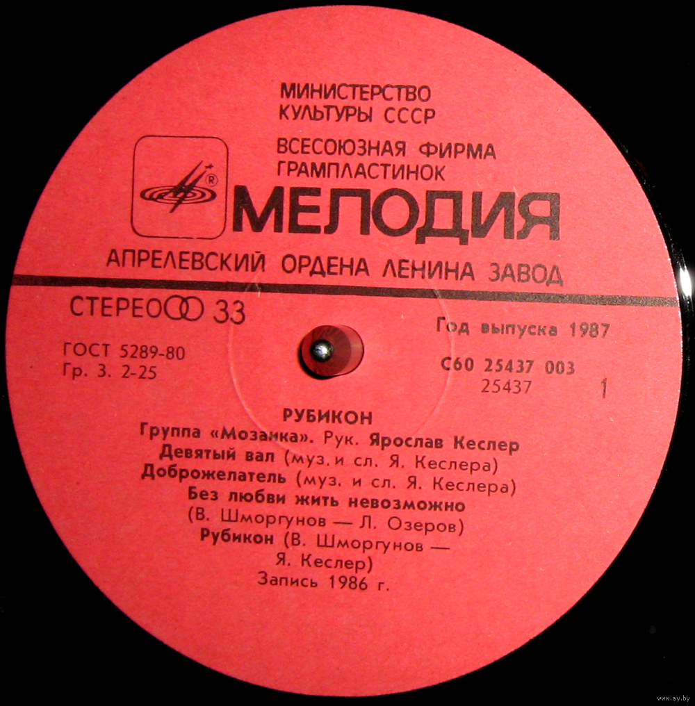 Всесоюзная студия грамзаписи. Запись 1986 г.