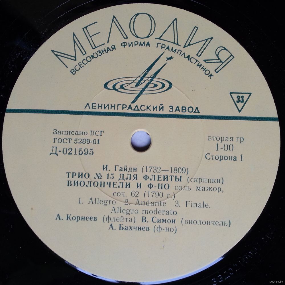 Трио № 15 для флейты (скрипки), виолончели и ф-но соль мажор, соч. 62 (1790 г. )