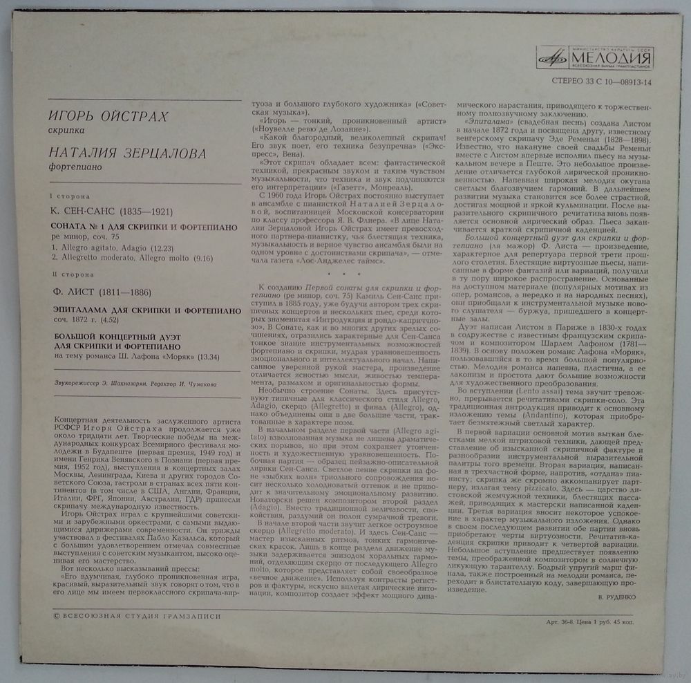 Авторские права © – Всесоюзная Студия Грамзаписи