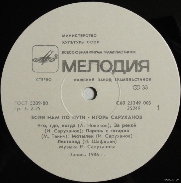 Всесоюзная студия грамзаписи. Запись 1986 года.