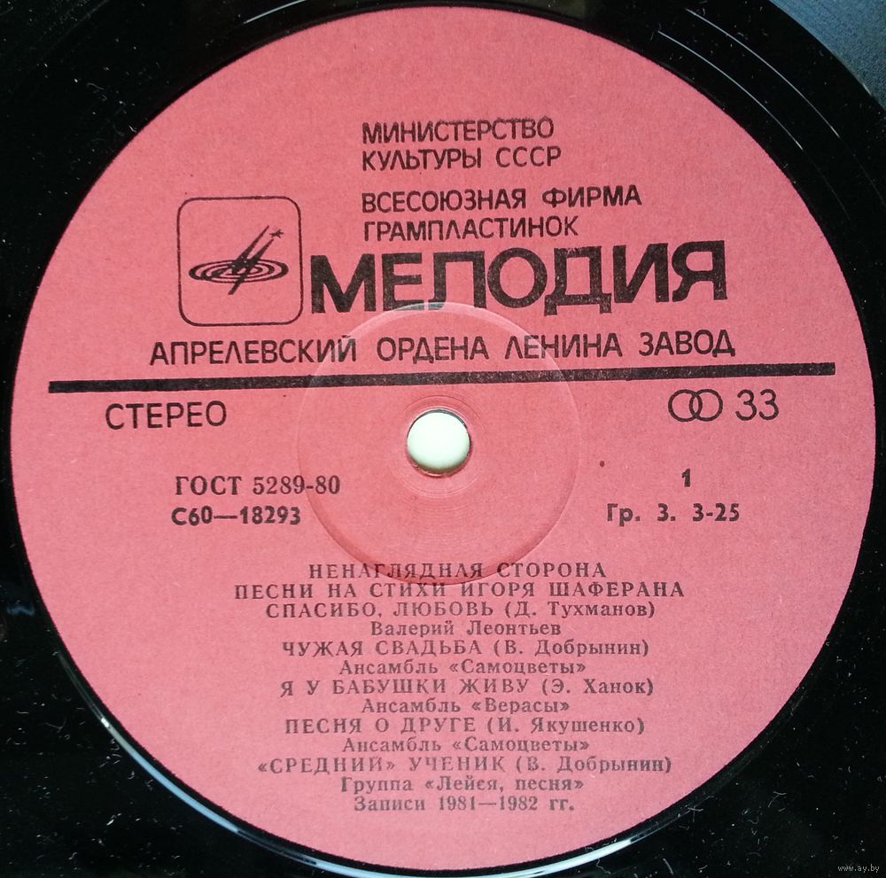 Всесоюзная студия грамзаписи. Записи 1981, 1982 годов.