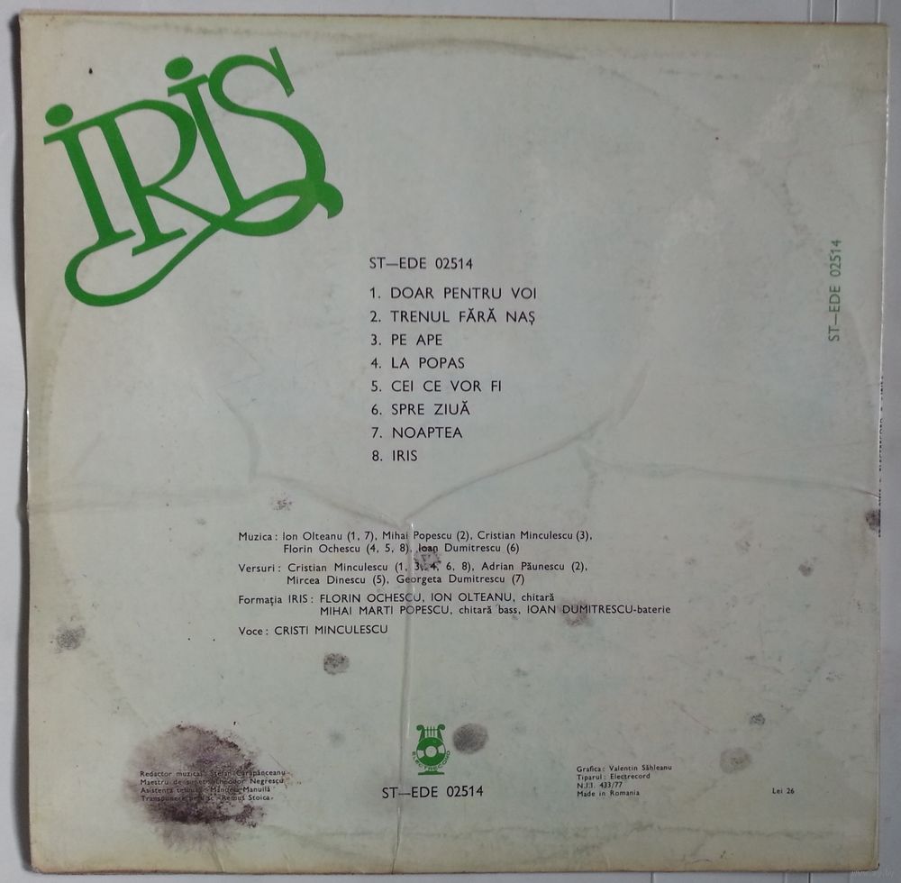 Album title "Iris" on front cover and "Iris 1" on both labels.