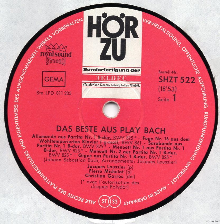 Старонка на discogs: https://www.discogs.com/release/11101088-Jacques-Loussier-Das-Beste-Aus-Play-Bach