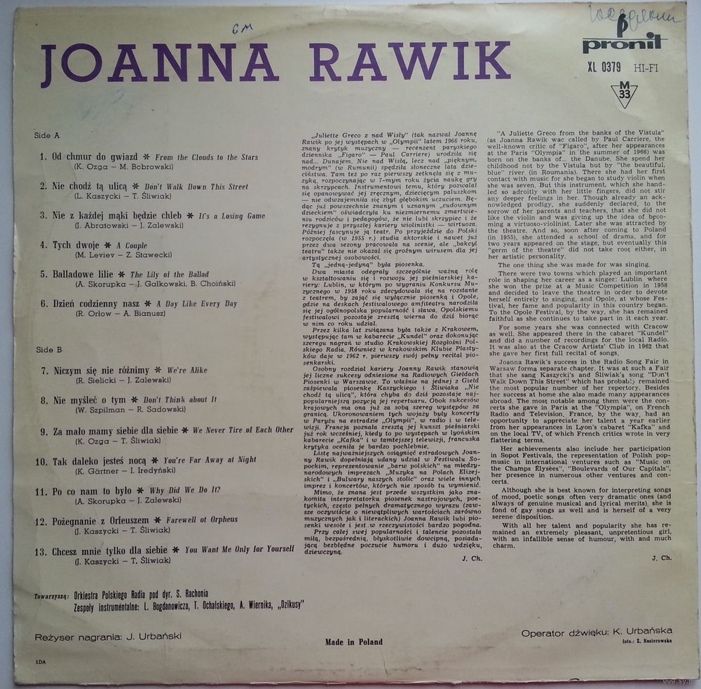 Identical sleeve as the Joanna Rawik - Joanna Rawik release.