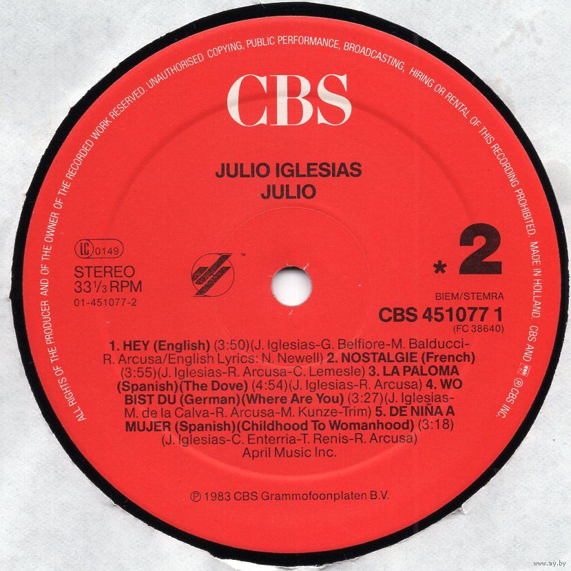 Старонка на discogs: https://www.discogs.com/release/11442561-Julio-Iglesias-Julio