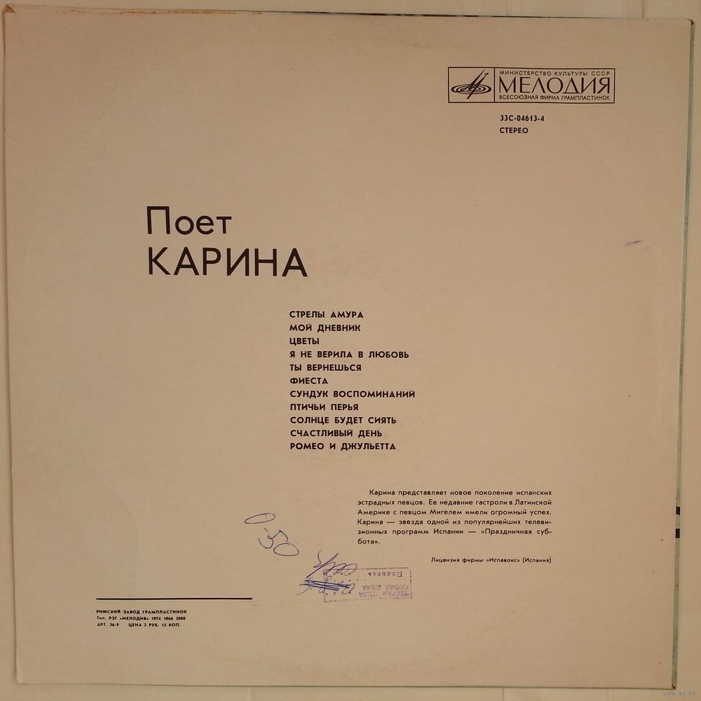 Карина представляет новое поколение испанских эстрадных певцов. Ее недавние гастроли в Латинской Америке с певцом Мигелем имели огромный успех. Карина — звезда одной из популярнейших телевизионных программ Испании — «Праздничная суббота».