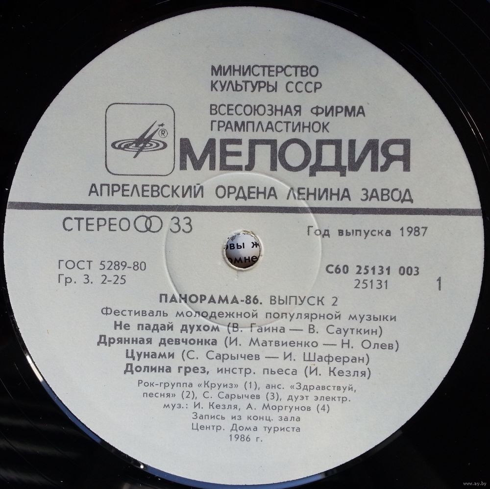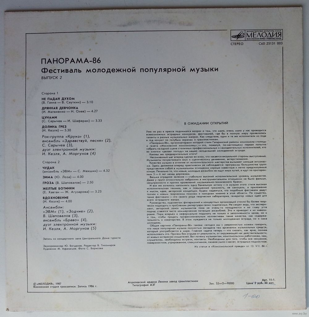 Всесоюзная студия грамзаписи. Запись 1986 года.