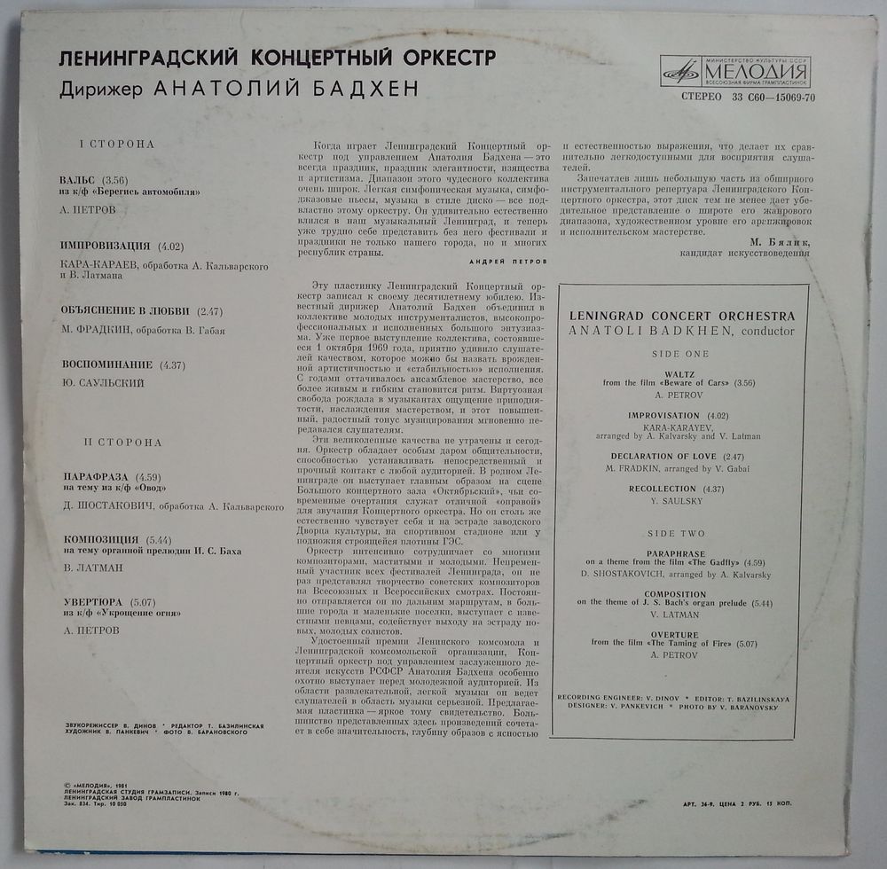 Производитель грампластинки – Ленинградский Завод Грампластинок