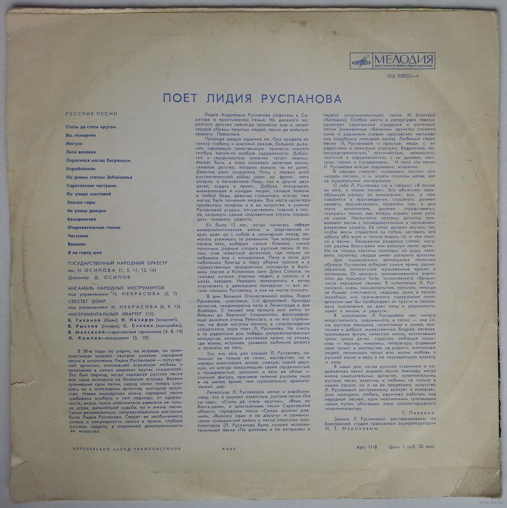 Записи Л.Руслановой реставрированы во Всесоюзной студии грамзаписи звукооператором Н.Т.Морозовым
