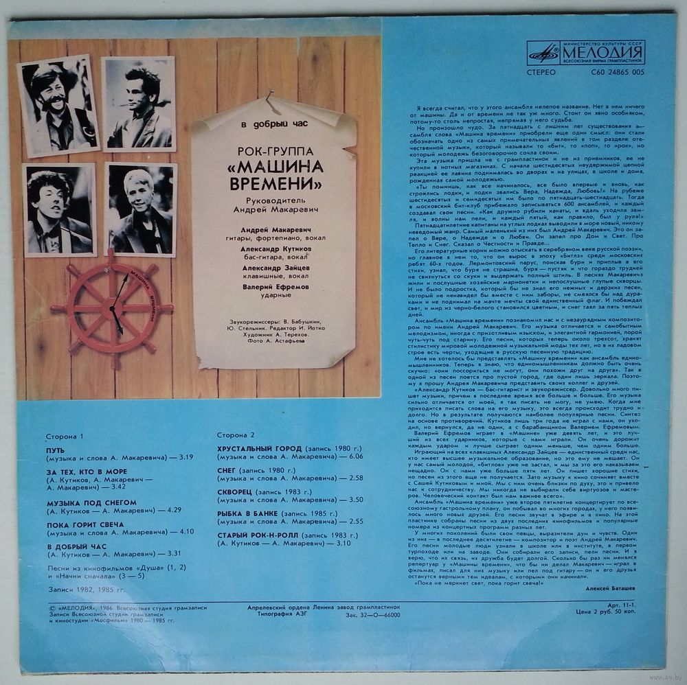 © «Мелодия», 1986. Всесоюзная студия грамзаписи
