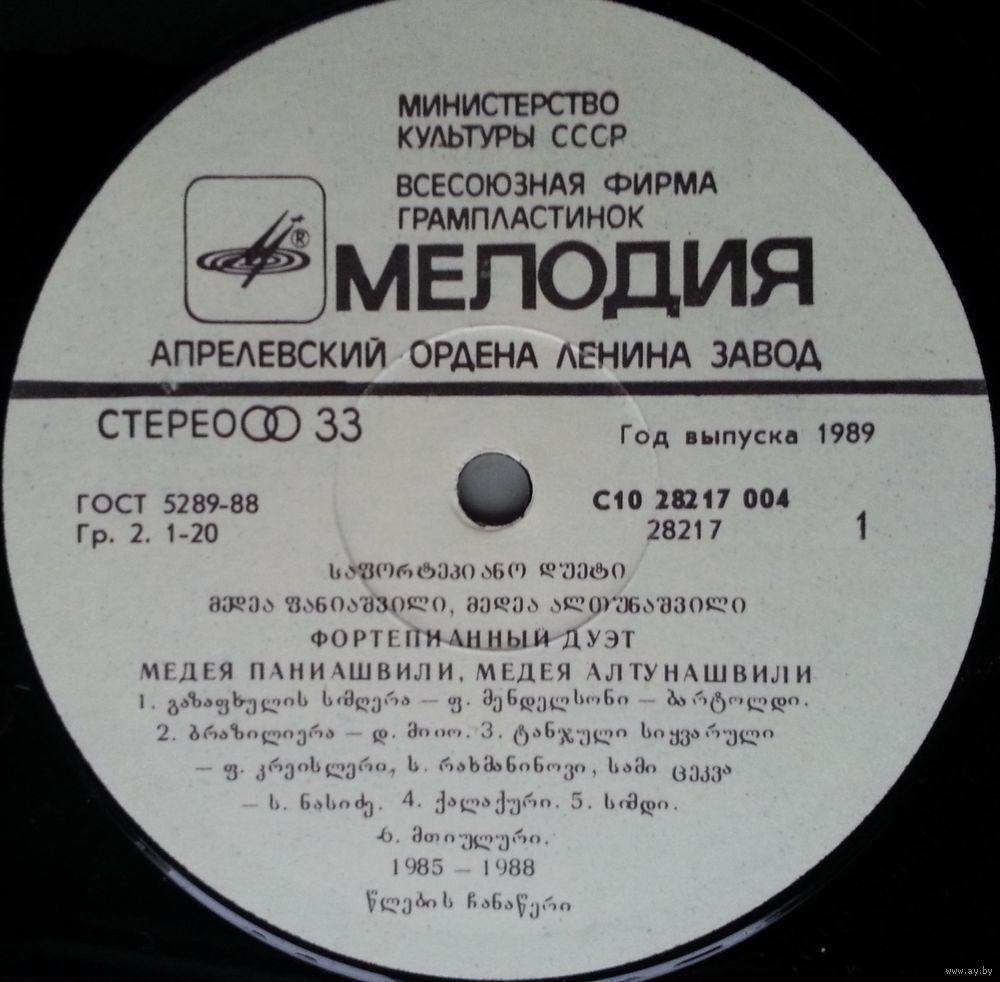 Arranged By – Медея Алтунашвили (треков: 1, 7 to 11), Медея Паниашвили (треков: 1, 7 to 11)Artwork By – З. НацвлишвилиContrabass – Тамаз КурашвилиDrums – Георгий Салагишвили (треков: 1, 7 to 10)Engineer – Дж. ЯшвилиLiner Notes – Р. КутателадзеPhotography – Ю. ОганезовPiano – Медея Алтунашвили, Медея ПаниашвилиSupervised By [Editor] – Дж. Джандиери Info in Georgian: მედეა ფანიაშვილი, მედეა ალთუნაშვილი – საფორტეპიანო დუეტი.