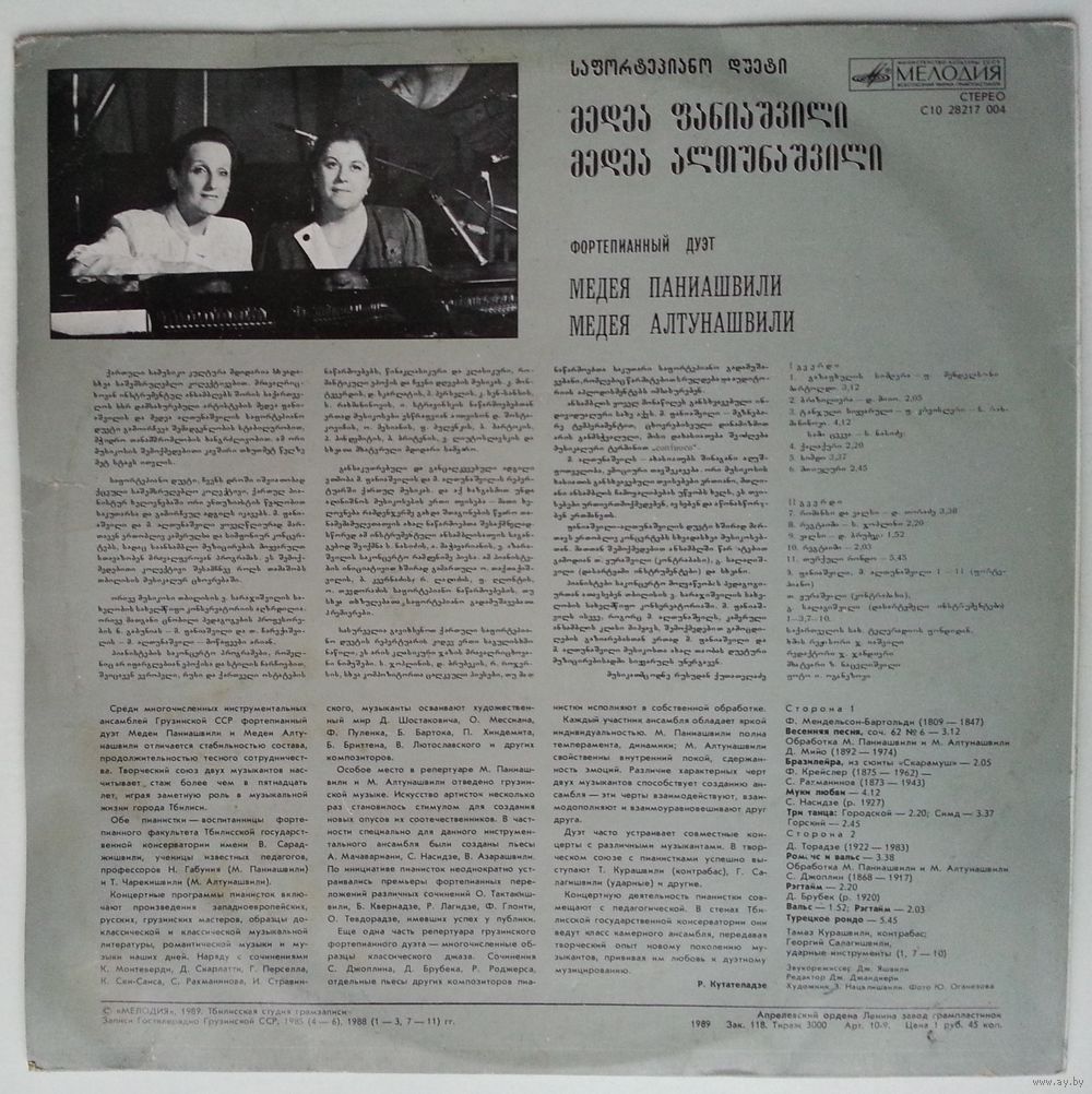 Arranged By – Медея Алтунашвили (треков: 1, 7 to 11), Медея Паниашвили (треков: 1, 7 to 11)Artwork By – З. НацвлишвилиContrabass – Тамаз КурашвилиDrums – Георгий Салагишвили (треков: 1, 7 to 10)Engineer – Дж. ЯшвилиLiner Notes – Р. КутателадзеPhotography – Ю. ОганезовPiano – Медея Алтунашвили, Медея ПаниашвилиSupervised By [Editor] – Дж. Джандиери Info in Georgian: მედეა ფანიაშვილი, მედეა ალთუნაშვილი – საფორტეპიანო დუეტი.