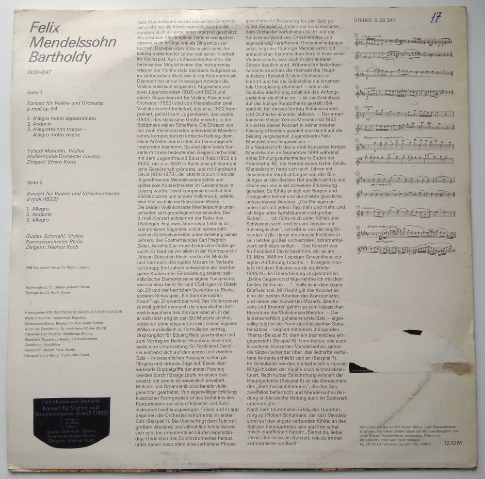 Violin – Gustav Schmahl (треков: B1 to B3), Yehudi Menuhin (треков: A1 to A3)