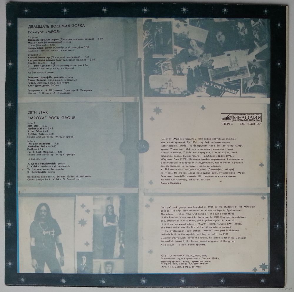 Mistyping of track title A1 / album title on back sleeve: Дваццать Восьмая Зорка