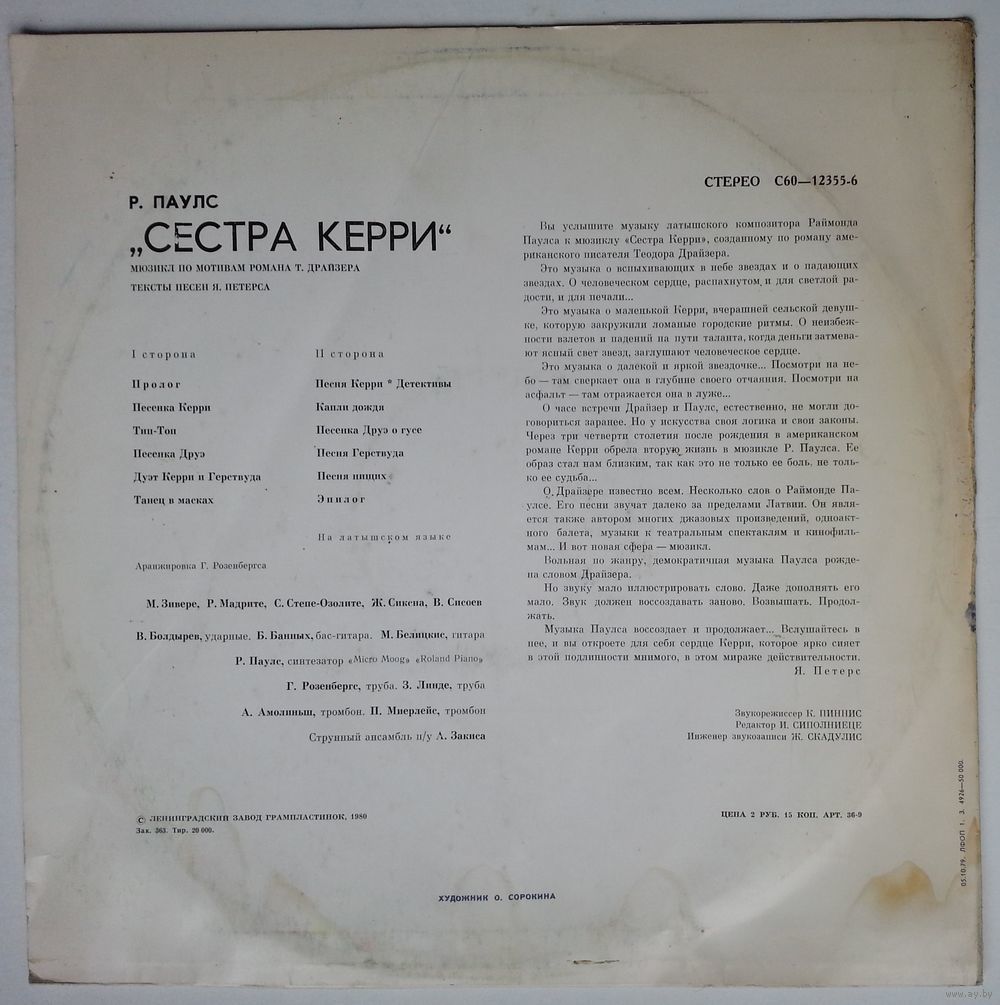Раймонд Паулс – синтезатор “Micro Moog”, “Roland Piano”;
