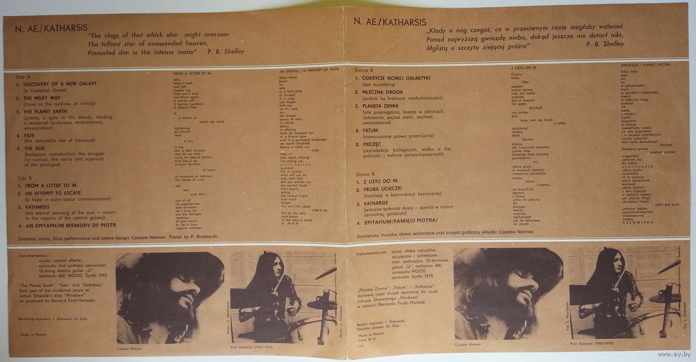 Instruments [Instrumentation], Vocals, Effects [Natural Effects], Percussion [Acoustic And Synthetic Percussion], Electric Guitar [12-String Electric Guitar "U"], Mellotron [Mellotron 400], Synthesizer [Moog, Synthi EMS] – Czesław Niemen