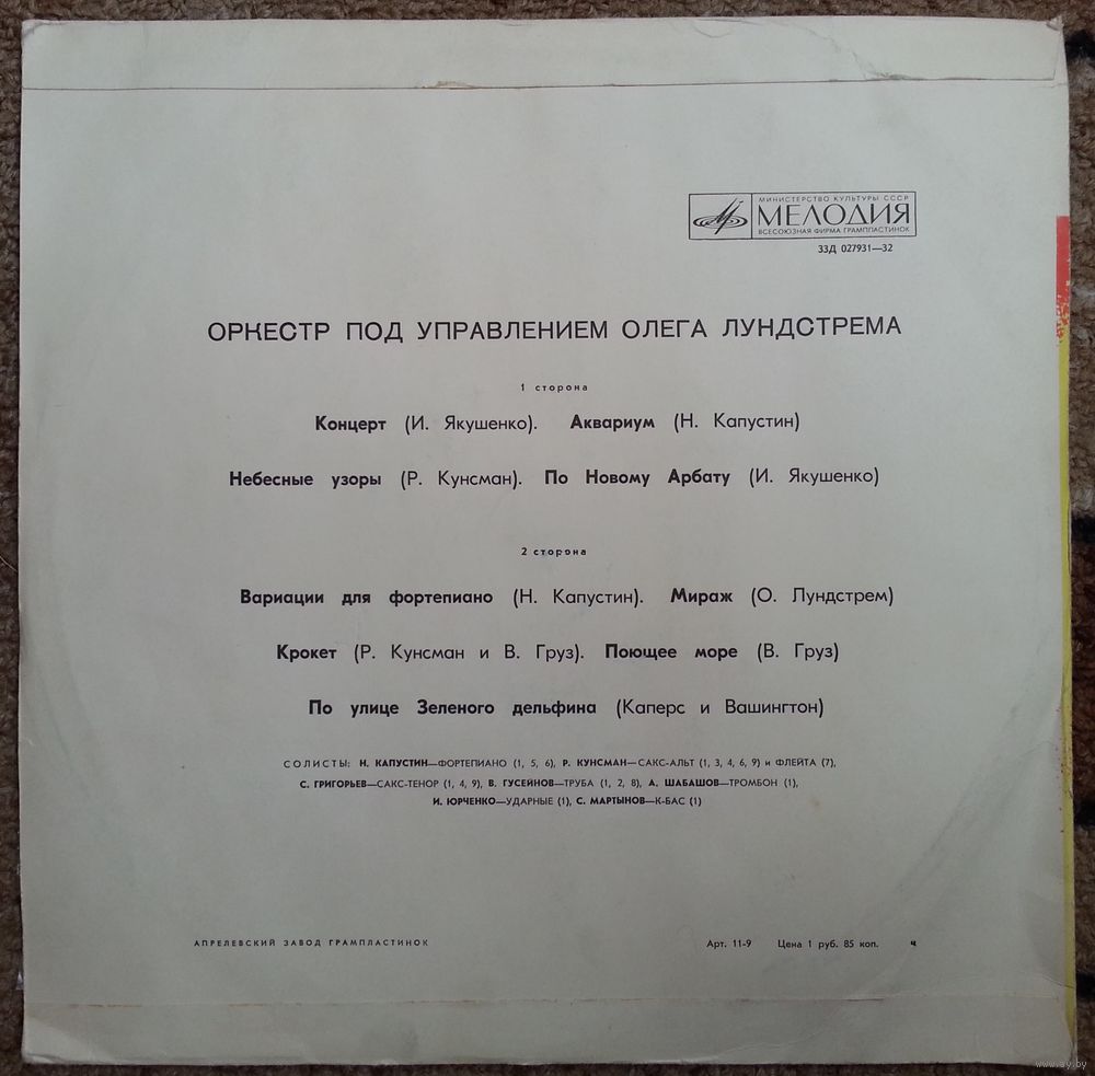 Солисты: Н. Капустин—ф-но (1, 2), Р. Кунсман — сакс-альт (2, 5) и флейта (3) С. Григорьев — сакс-тенор (5), В. Гусейнов — труба (4)
