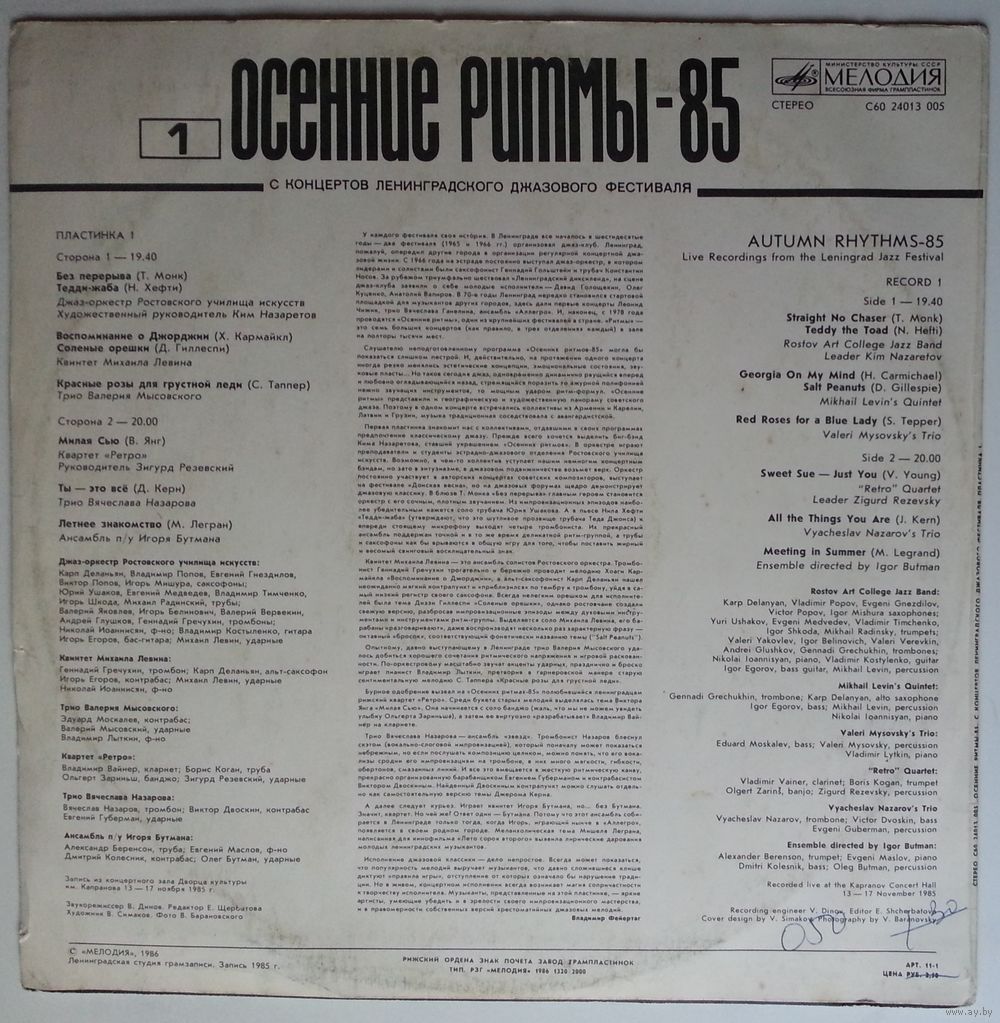 С концертов Ленинградского джазового фестиваля 13-17 ноября 1985 г.