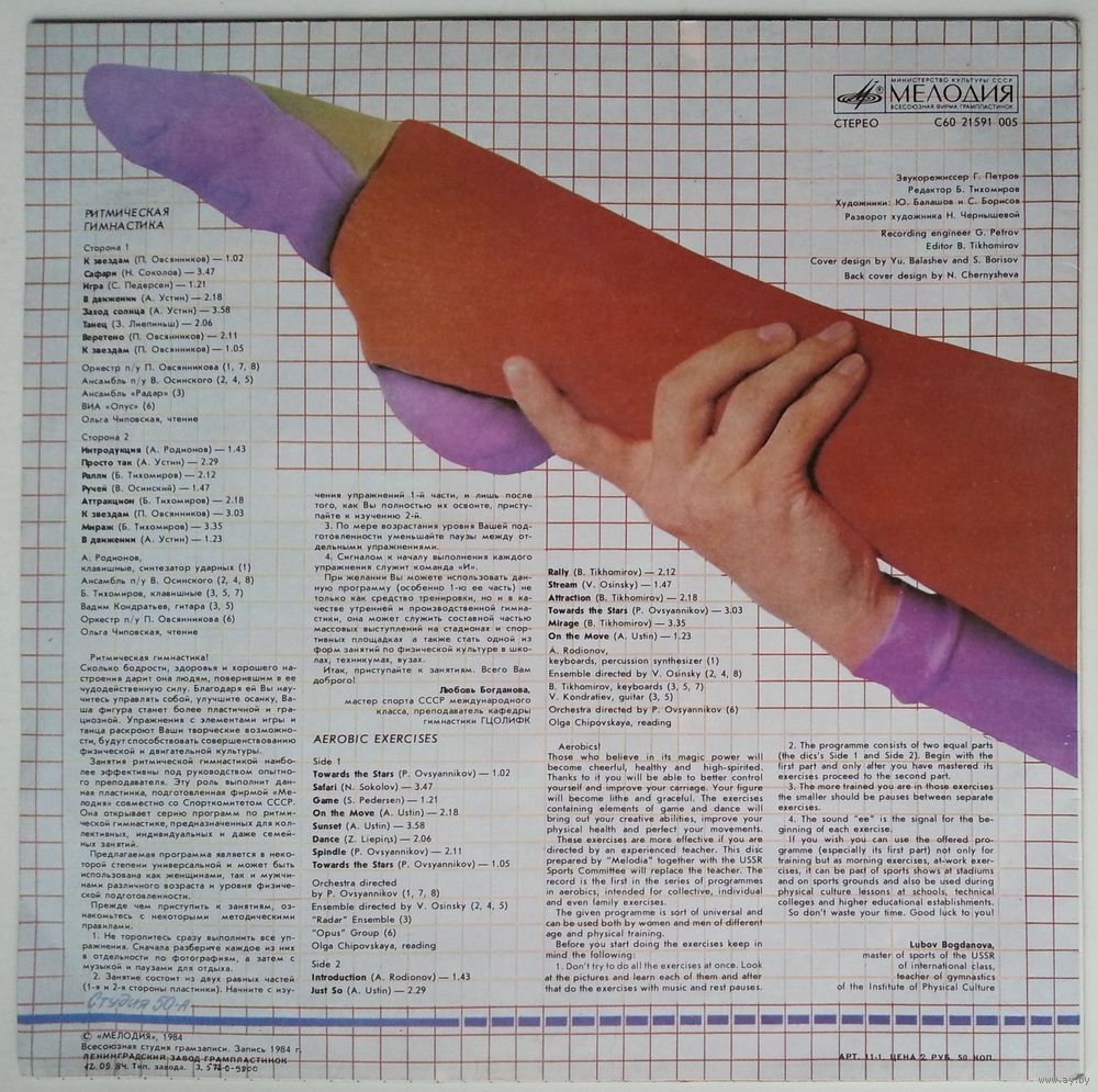 Занятия ритмической гимнастикой наиболее эффективны под руководством опытного преподавателя. Эту роль выполнит данная пластинка, подготовленная фирмой «Мелодия» совместно со Спорткомитетом СССР. Она открывает серию программ по ритмической гимнастике, предназначенных для коллективных, индивидуальных и даже семейных занятий.