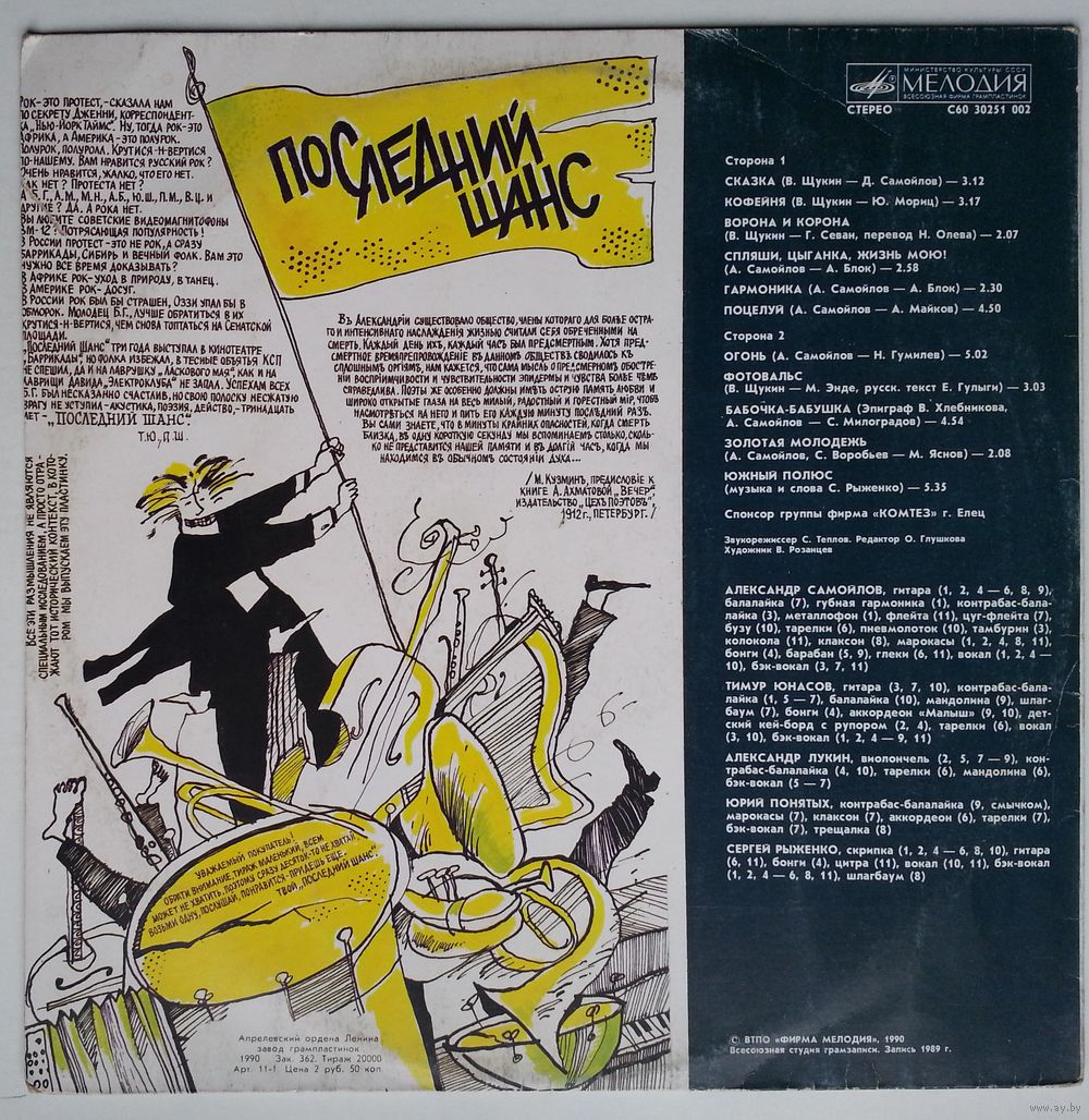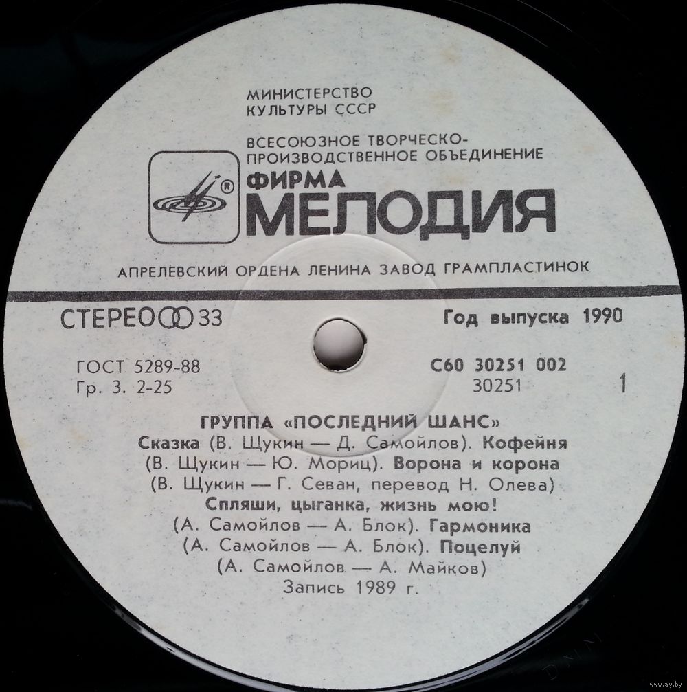 Всесоюзная студия грамзаписи. Запись 1989 года.