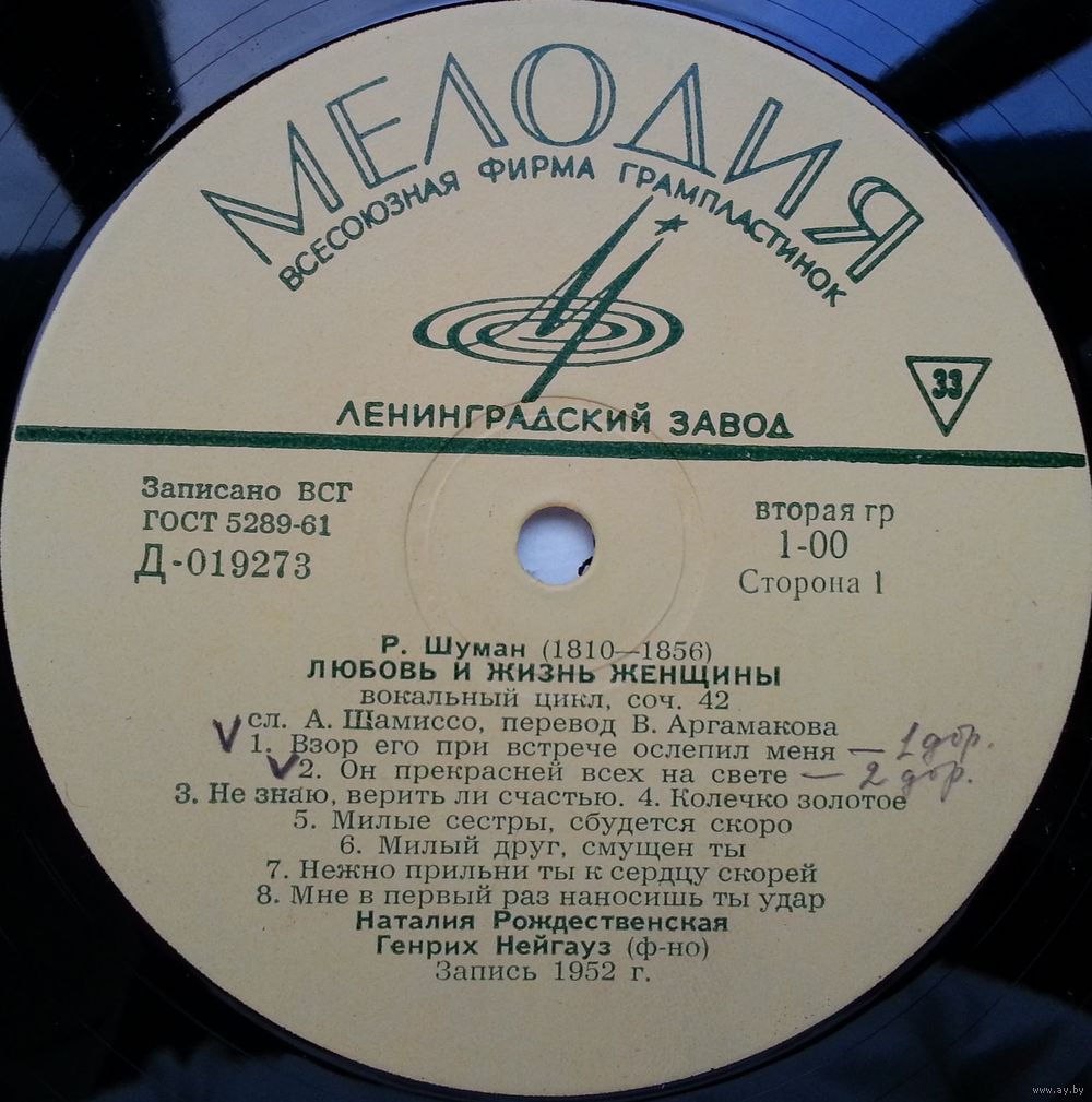 Р. Шуман: Любовь и жизнь женщины, вокальный цикл на сл. А. Шамиссо, соч. 42 — Н. Рождественская (сопрано), Г. Нейгауз (ф-но)