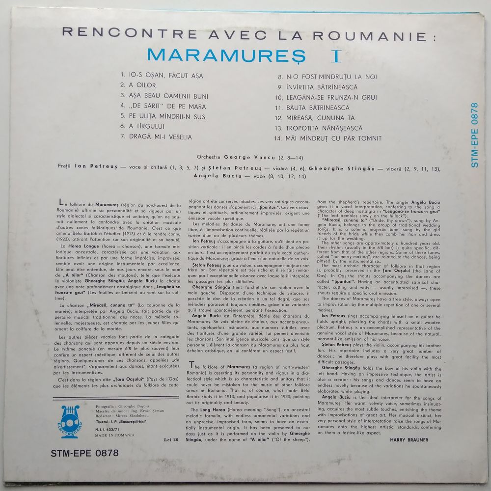 Violin – Gheorghe Stîngău (tracks: A2, B9, B11, B13), Ștefan Petreuș (tracks: A4, A6)