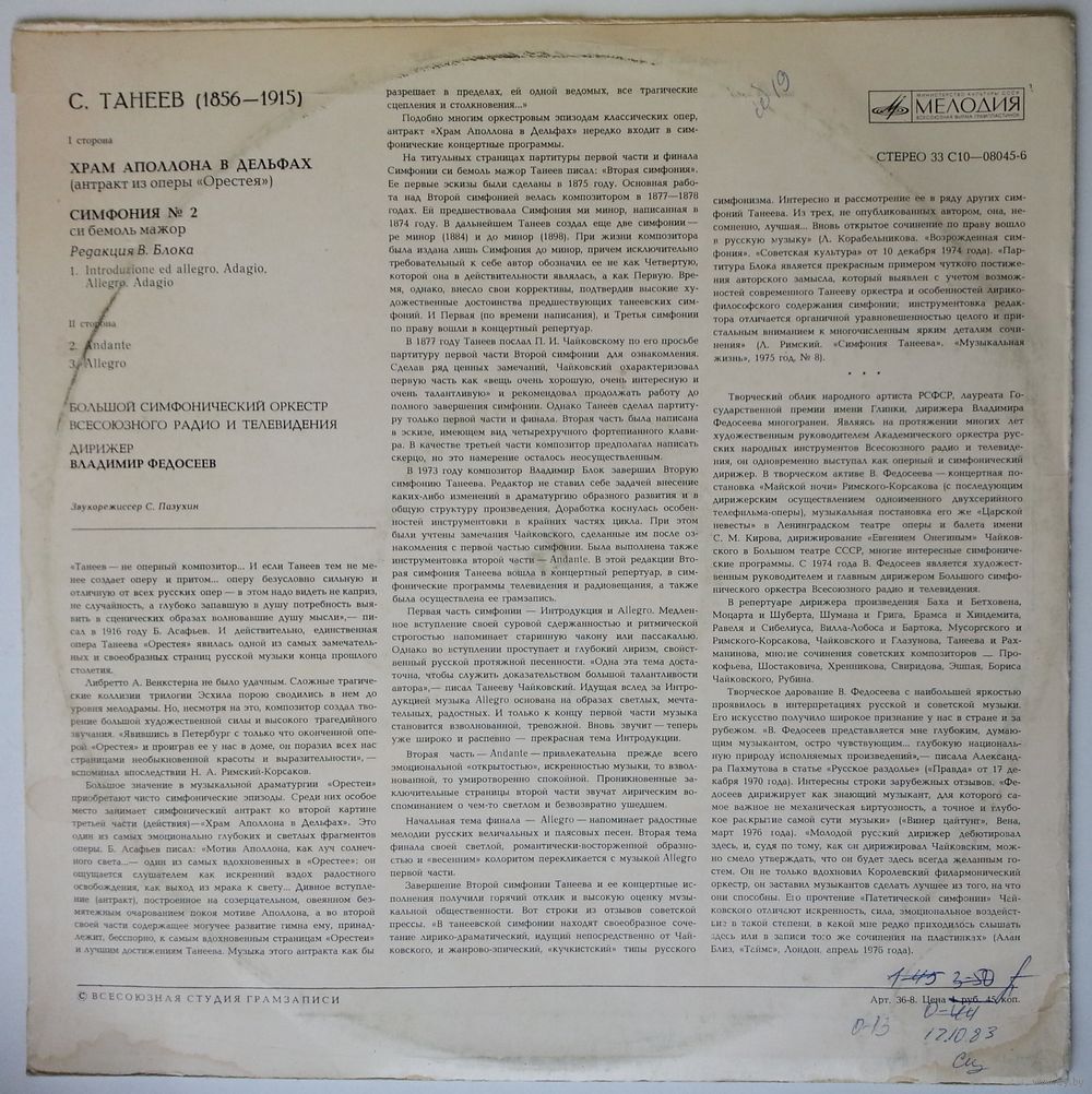 Pressed By – Всесоюзная Студия Грамзаписи